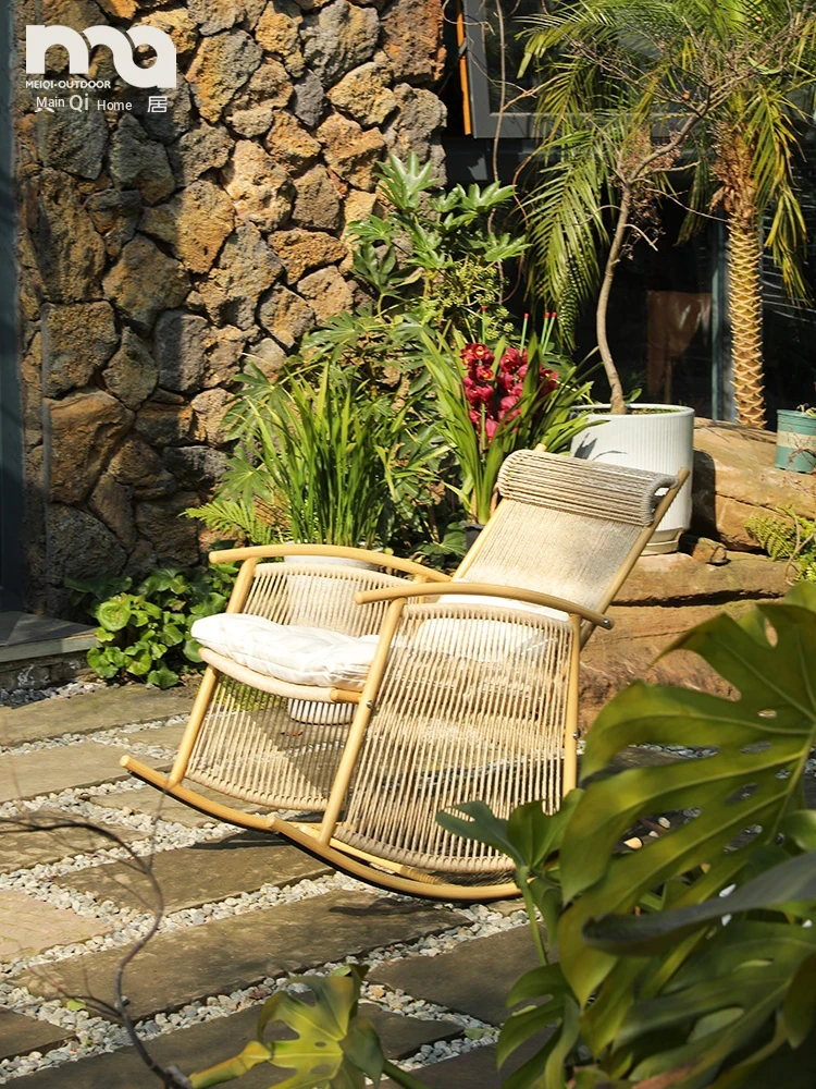 Meiqi Rattan Rocking Chair - Relaxing Lounge Chair for Adults, Perfect for Napping at Home, Balcony, or Living Room. Comfortable and Stylish Sofa Chair for Lazy Days!
