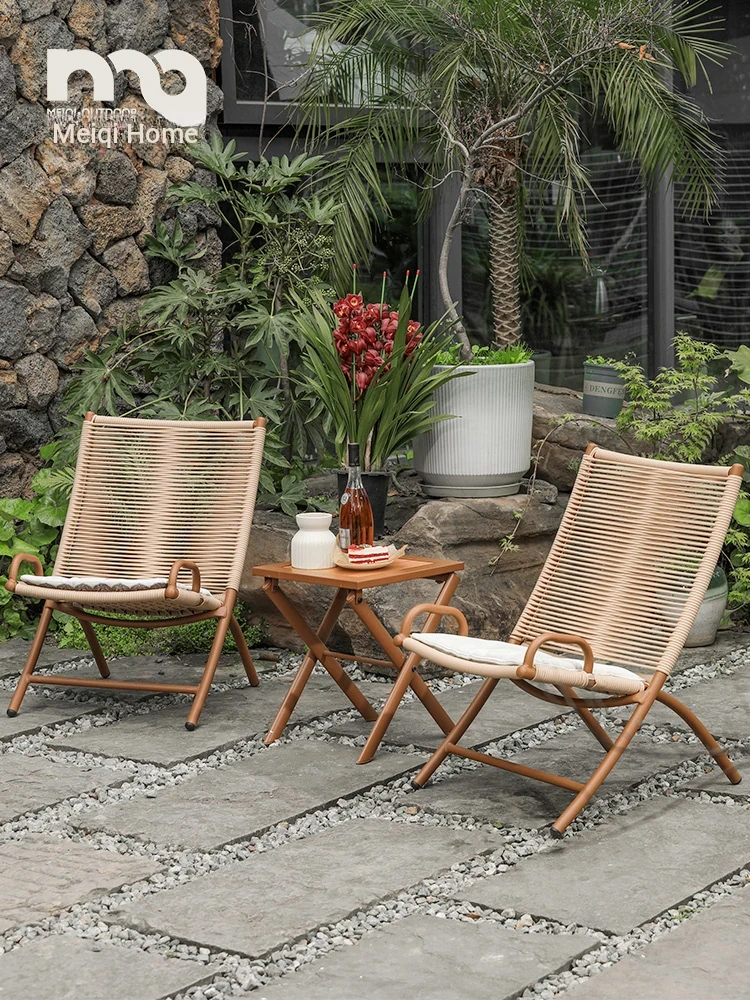 Meiqi Outdoor Folding Recliner Chair - Stylish Waterproof Rattan Lounge Chair for Small Spaces, Perfect for Balconies and Gardens, Ideal for Relaxation and Leisure