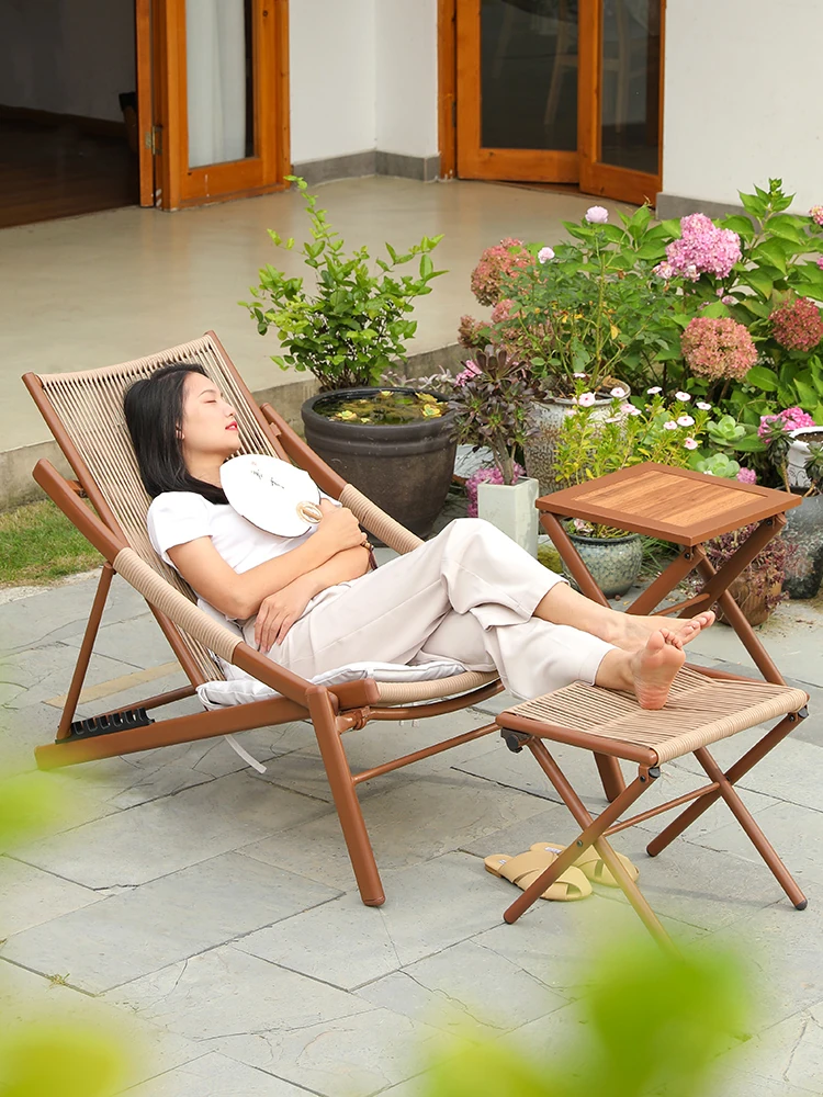 Outdoor Folding Lounge Chair - Perfect for Napping, Home Use, and Balconies. Embrace the Wabi-Sabi Style with this Cozy Recliner for Your Garden or Patio. Ideal for Relaxation and Leisure.