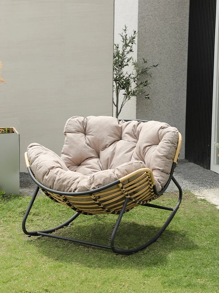 Stylish Balcony Lounge Chair - Rattan Rocking Chair for Adults, Perfect for Living Room and Napping, Trendy Home Relaxation Sofa Chair