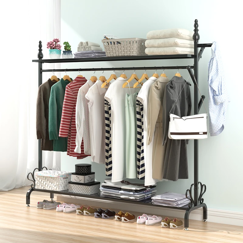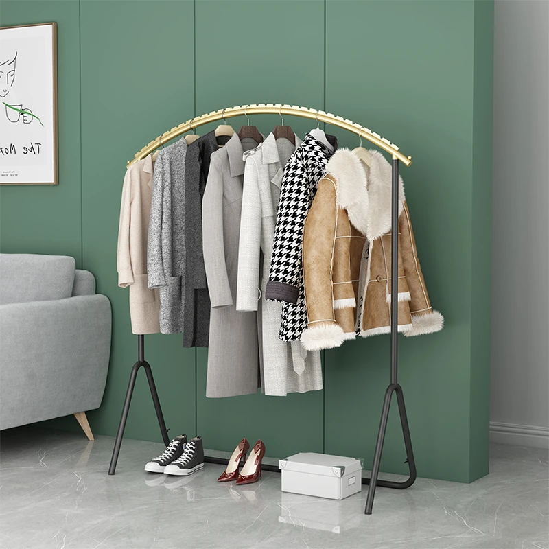 ハオ鉄匠の家庭用スタンド式ハンガー - シンプルでおしゃれな衣類ラック!寝室やリビングにぴったり。衣類や帽子をスッキリ収納し、生活空間を美しく演出します。これ一つでお部屋がスッキリ!