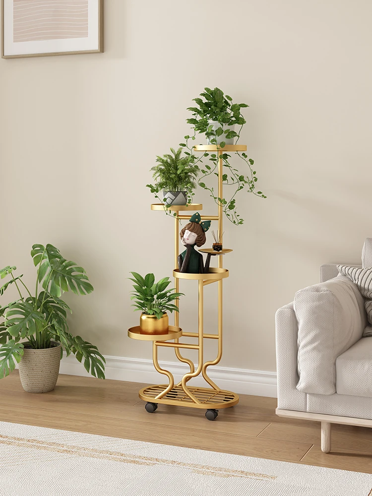 北欧風のラグジュアリー花台 - リビングやバルコニーに最適な多層型インテリア収納ラック!観葉植物や多肉植物を美しくディスプレイし、高級感あふれる空間を演出します。