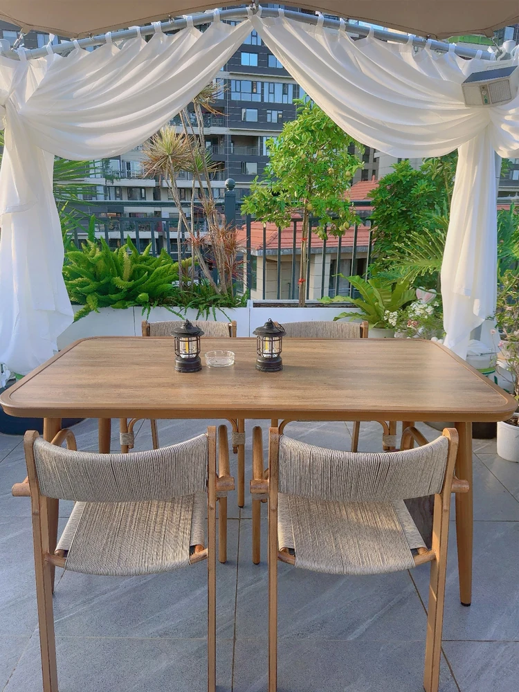 美齐デザインの防水・防日焼けのアウトドアテーブルセット!庭やバルコニーにぴったりな高品質チーク材使用のテーブル&チェアで、快適な屋外ダイニングを楽しもう!