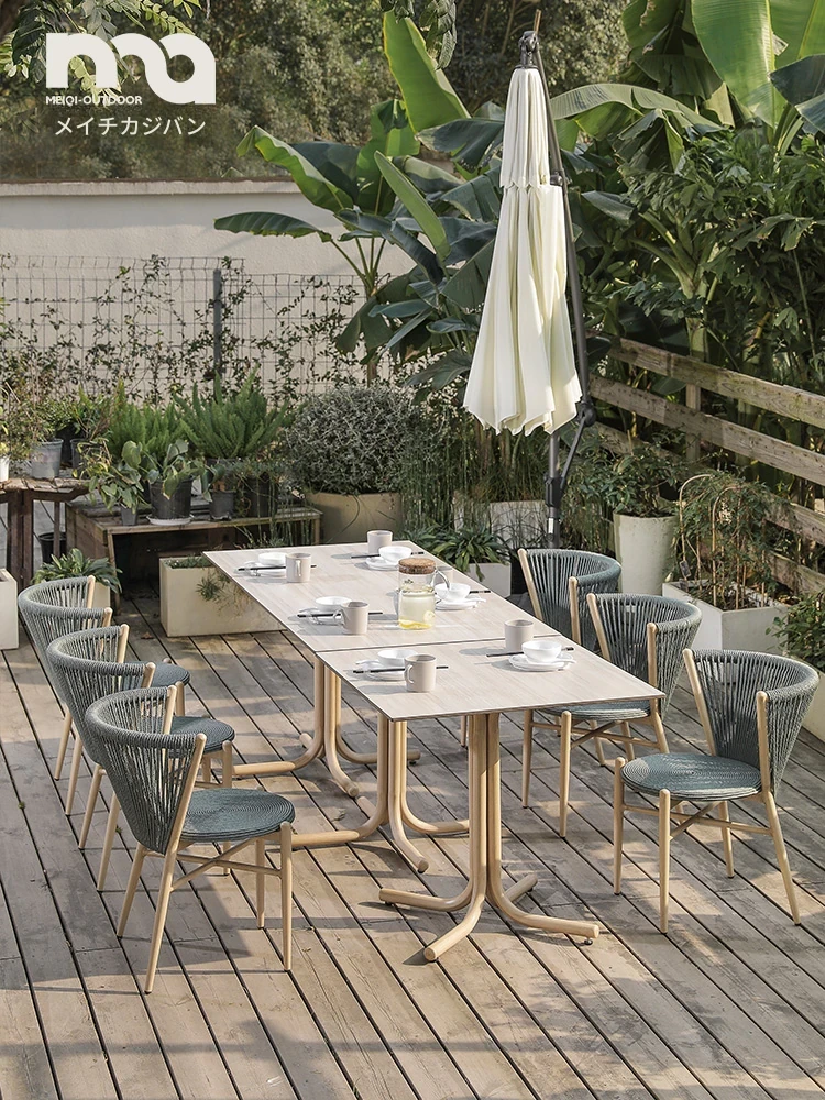 美齐アウトドア用テーブルセット|四角・丸型・長テーブル選べるスタイル|テラス・庭・カフェに最適な屋外用家具|商業用にも対応したおしゃれなデザイン!