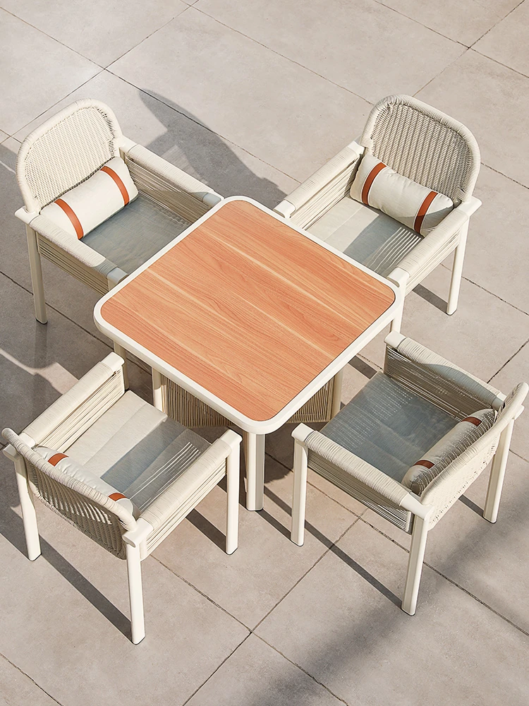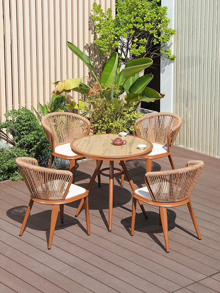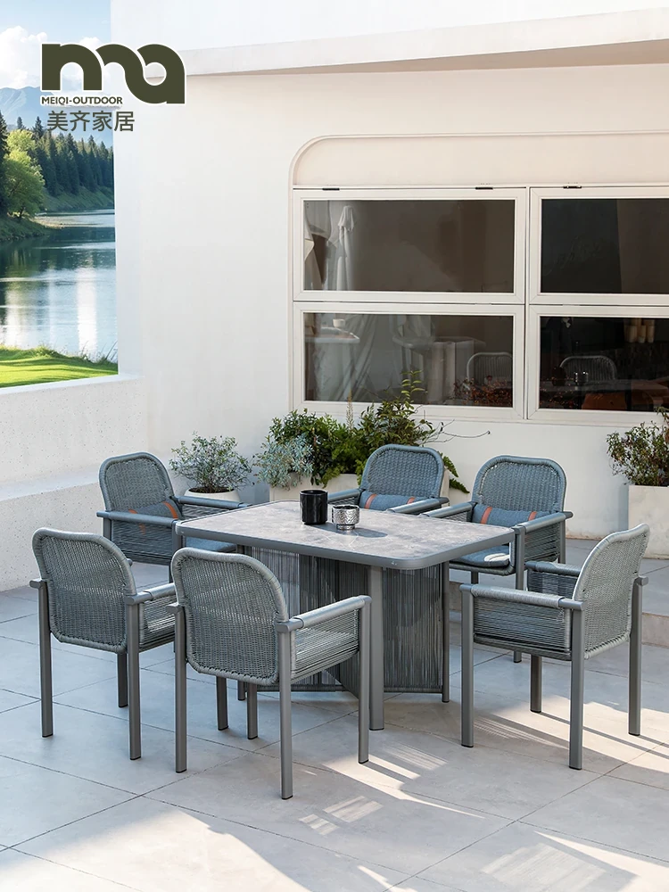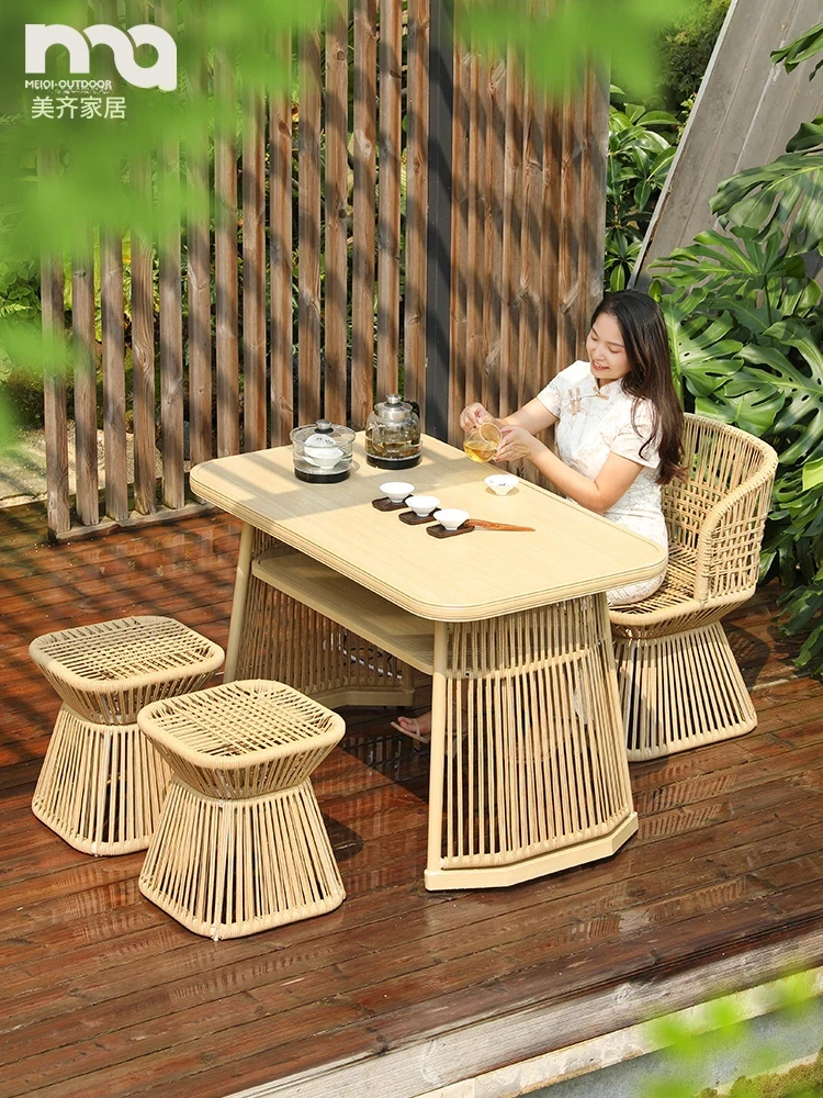 美齐のアウトドアパティオテーブル&チェアセット - 北欧風ガーデンヴィラ用、屋外テラスに最適なラタン製チェア、バルコニー用テーブルセット、ホテルのダイニングにもぴったり!快適でスタイリッシュな空間を演出します。