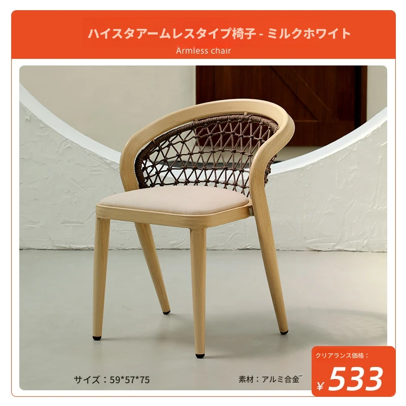 アウトドアリラックスダイニングチェア - バルコニーや屋外に最適!おしゃれなラタン風デザインのテーブルセット、カフェにもぴったりなアルミ合金製のスタイリッシュな外置きテーブル。快適なひとときをお楽しみください!