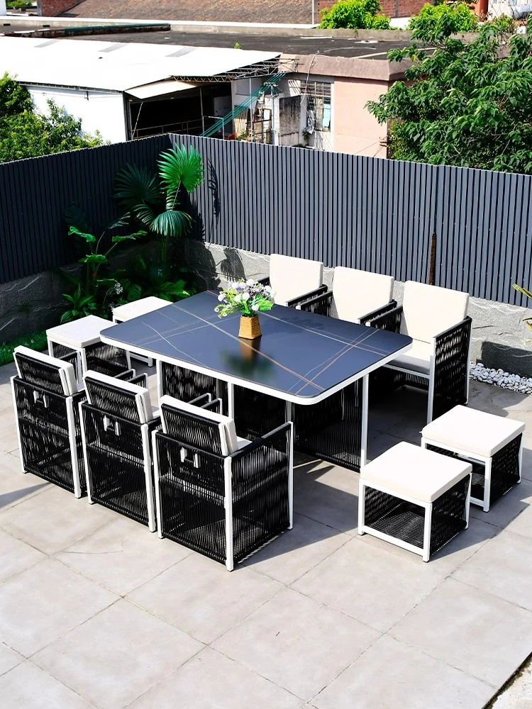 Aluminum Outdoor Dining Set - Stylish Patio Furniture for Gardens, Villas, and Courtyards - Perfect for Relaxing and Entertaining Guests at Your Terrace or Backyard!