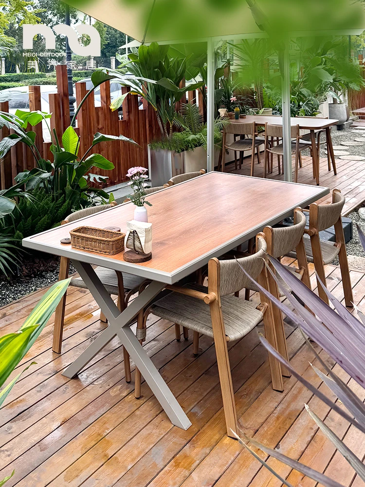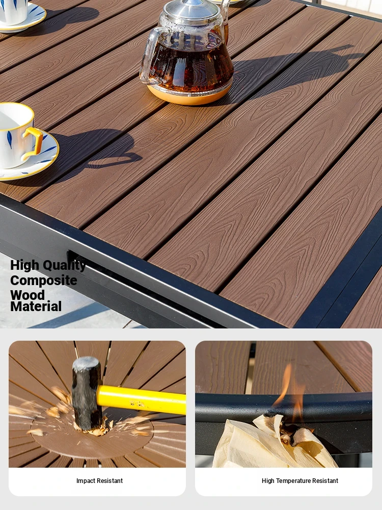 Outdoor Patio Furniture Set - Waterproof and Sun-Resistant Aluminum-Plastic-Wood Table and Chairs for Villas, Cafes, and Relaxation. Perfect for Your Outdoor Oasis!