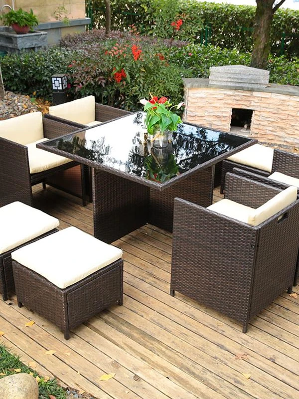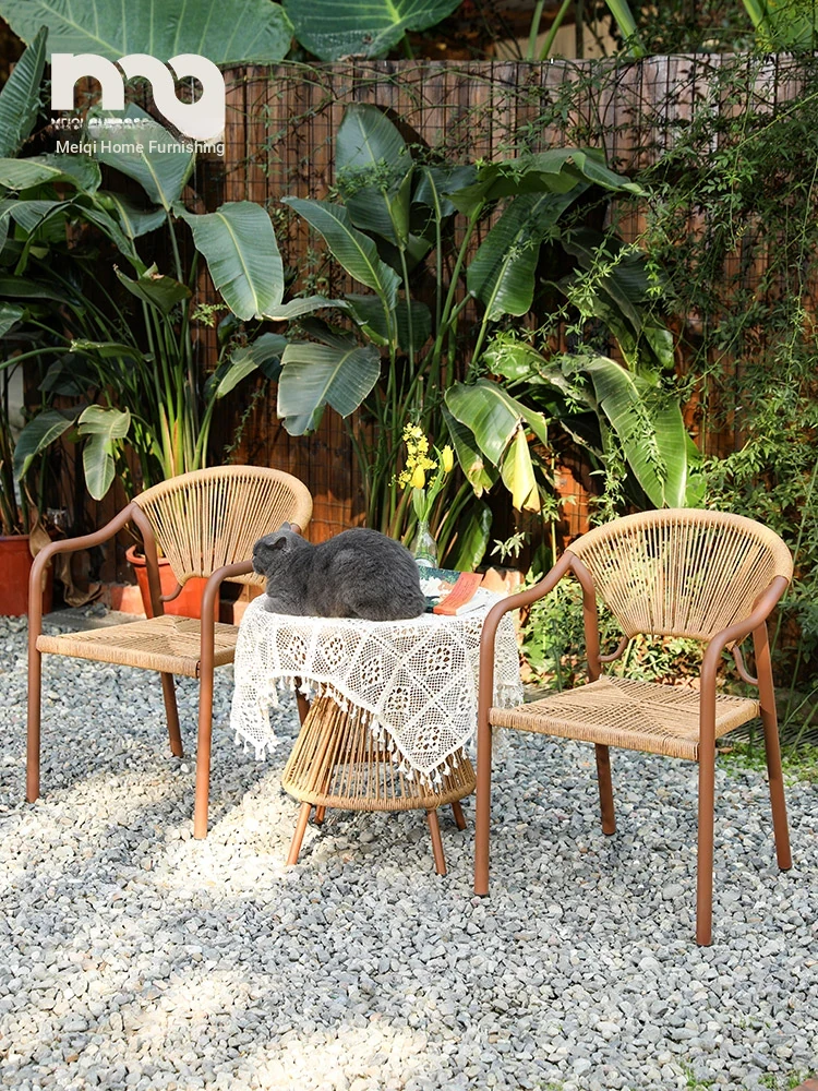 Meiqi Outdoor Patio Dining Set - Stylish Rattan Chairs and Table for Balcony, Garden, and Courtyard Relaxation - Perfect for Cozy Outdoor Spaces and Homestays