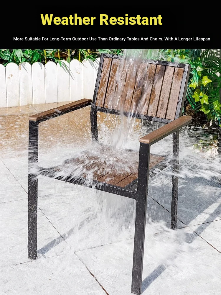 Outdoor Anti-Rust Plastic-Wood Patio Furniture Set - Stylish Dining Table and Chair Combo for Villas, Gardens, Balconies, and Cafés - Perfect for Relaxing and Entertaining in Your Outdoor Space