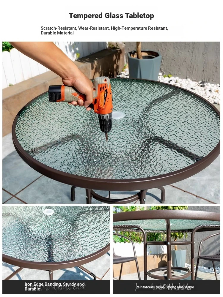 Outdoor Balcony Tea Table and Chair Set - 3-Piece Patio Furniture for Relaxation, Perfect for Gardens and Villas, Ideal for Home Use with One Table and Two Chairs