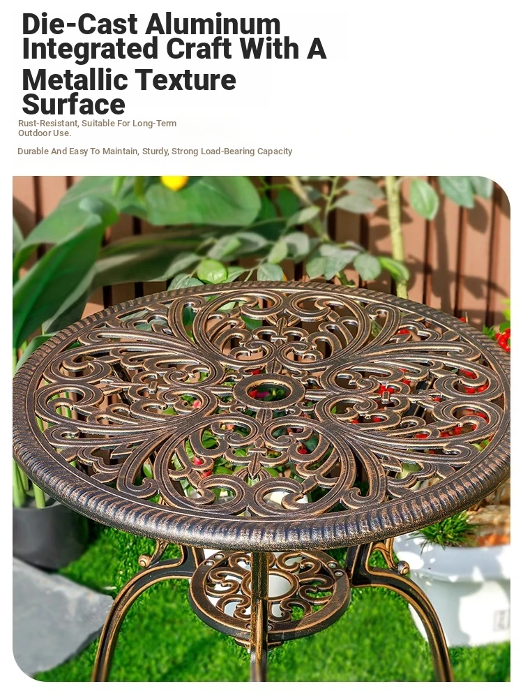 European-Style Cast Aluminum Outdoor Bistro Set - 3-Piece Balcony Table and Chair Set for Garden, Patio, and Villa - Perfect for Relaxing and Entertaining in Your Outdoor Oasis
