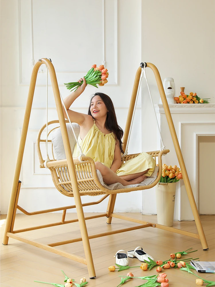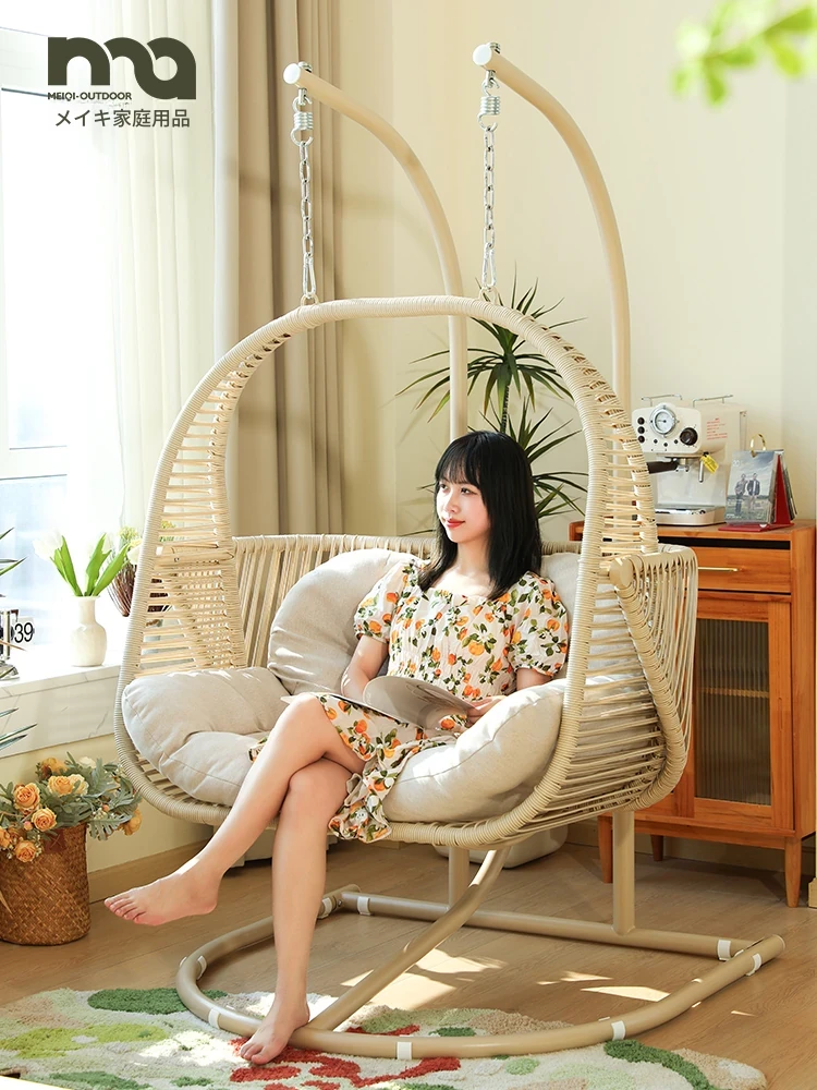 バルコニー用吊り籠式ラタンチェア|室内外兼用ダブルスイングハンモック|人気のリラックスリクライニングチェア|心地よい揺れで疲れを癒す、家族や友人と楽しめるおしゃれなアイテム!