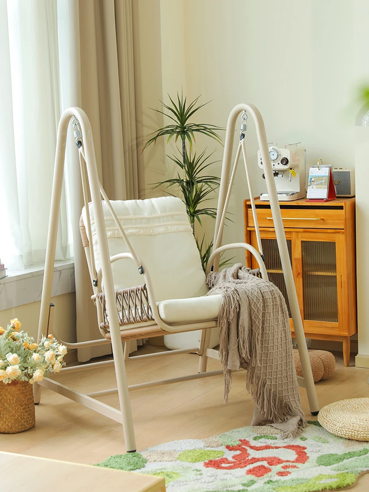 メイチの秋吊り椅子 - おしゃれなバルコニー用シングルハンモックチェア。室内でも屋外でも使える、贅沢なリラックスタイムを提供します。ヴィラスタイルの吊りバスケットで、心地よい揺れを楽しんで!