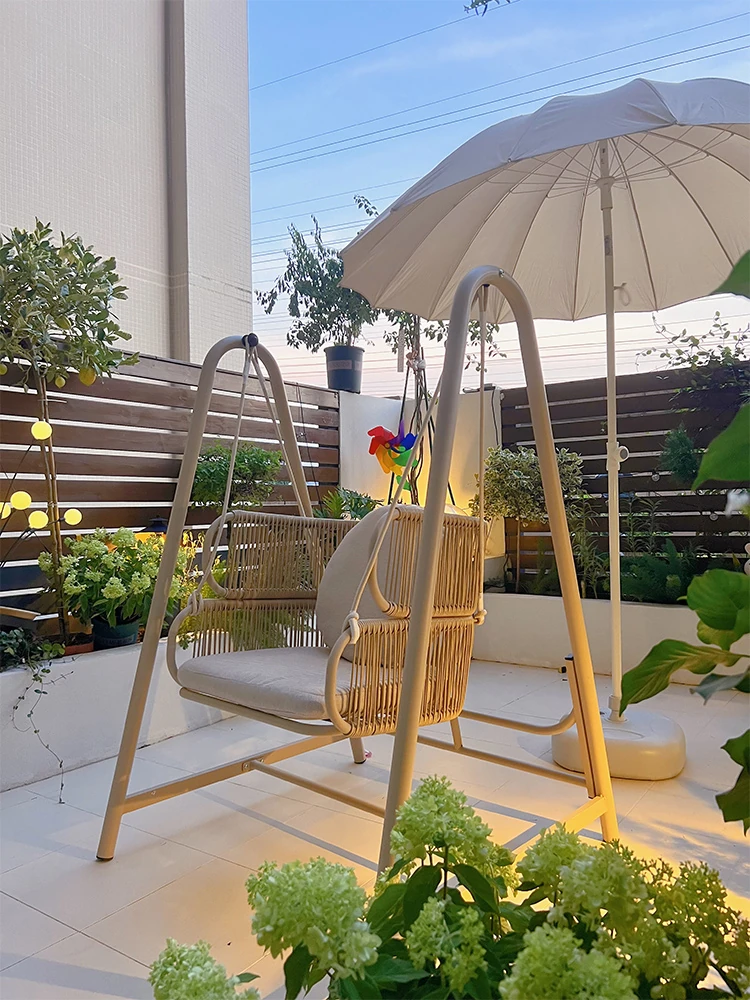バルコニー用秋風の揺れるハンモックチェア|インテリアに最適なネット風のラウンジチェア|屋外ガーデンでリラックス|おしゃれな小庭で楽しむ揺り椅子!