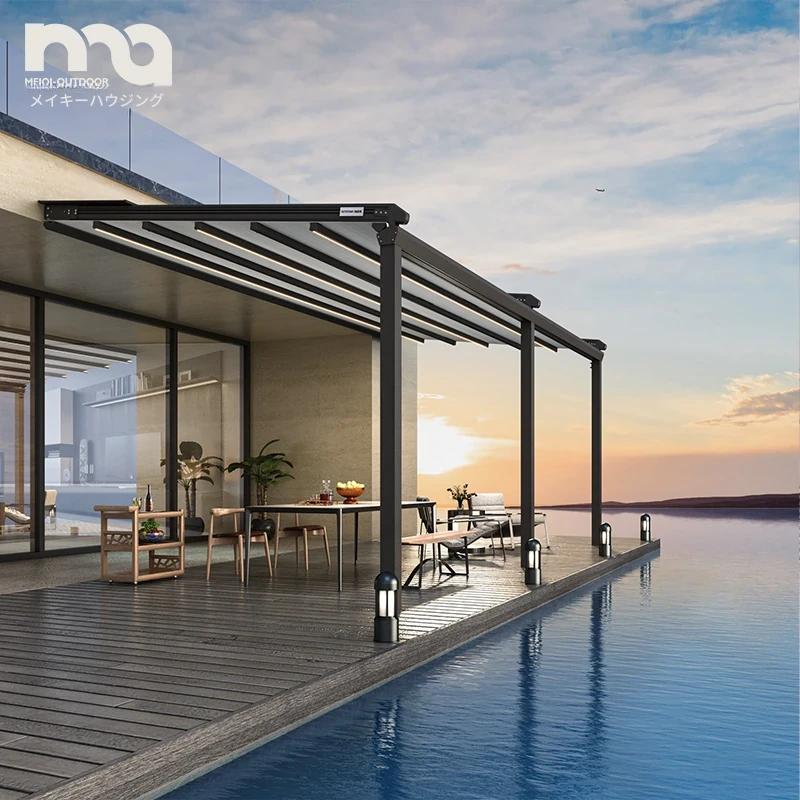 アウトドアパビリオン簡易翻板式ルーバーテラス屋上ガーデン別荘用防雨防晒テント 電動シェードで快適な空間を実現!おしゃれで機能的なデザインで、庭やバルコニーにぴったりです。