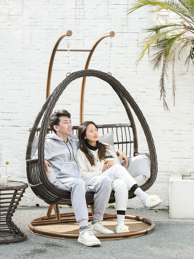 Double Hanging Rattan Chair for Indoor and Outdoor Use - Trendy Swing Cradle Chair for Balcony, Perfect for Relaxation and Enjoying Nature
