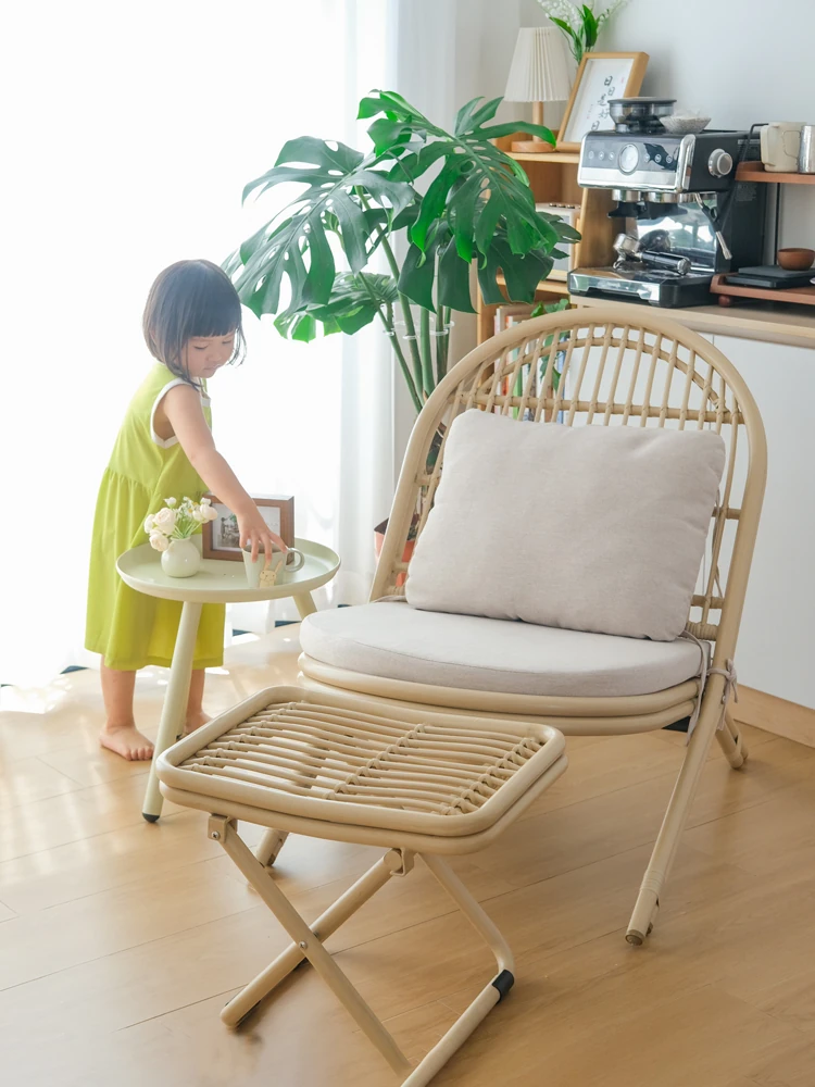 Foldable Recliner Chair - Lazy Single Sofa for Relaxation, Perfect for Napping with Adjustable Backrest, Ideal for Home and Balcony Use, Stylish Rattan Design