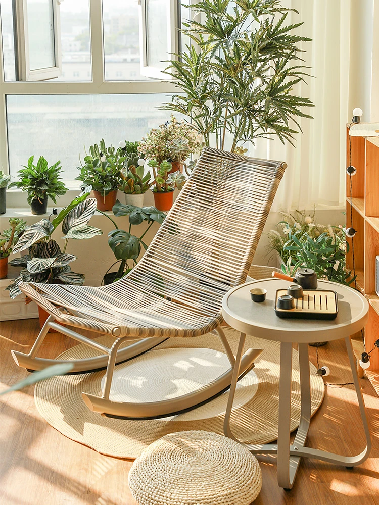 Modern Rattan Rocking Chair - Simple and Comfortable Lounge Chair for Home and Balcony, Perfect for Napping and Relaxing in Style, Nordic Design