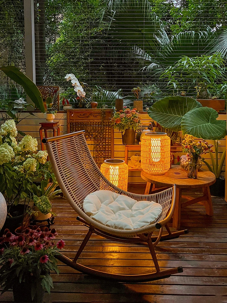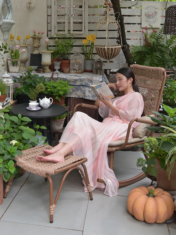 Meiqi Rocking Chair - Comfortable Outdoor Recliner for Adults, Perfect for Garden and Balcony Relaxation, Stylish Rattan Lounge Chair for Courtyards, Ideal Lazy Chair for Leisure Time.