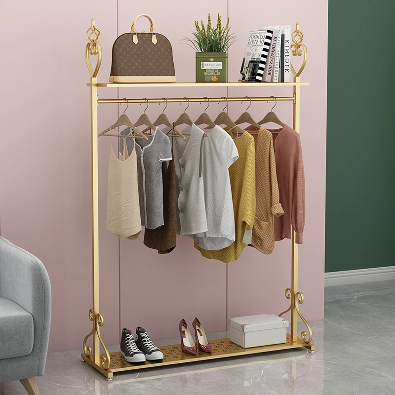 Stylish Free-Standing Clothes Rack for Bedroom - Double Rod Open Design with Nordic INS Style, Perfect for Hanging Clothes and Displaying Shoes, Ideal for Home Use