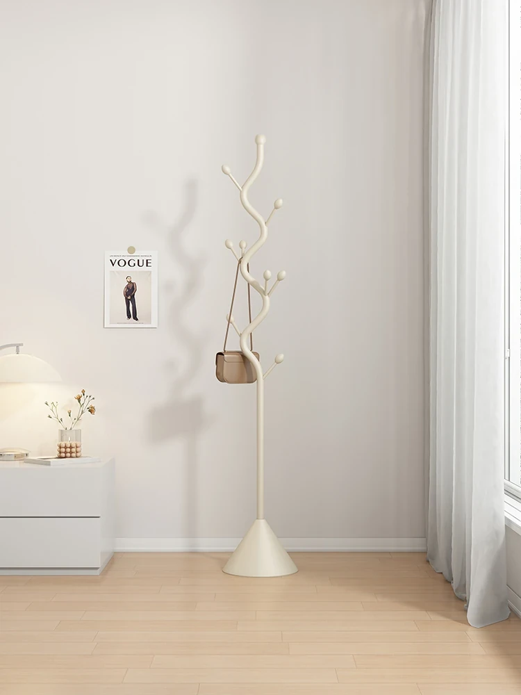 Elegant Cream Metal Coat Rack - Stylish Freestanding Hanger for Bedroom & Home Storage, Perfect for Organizing Clothes by the Bed