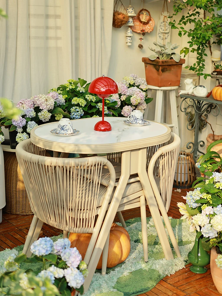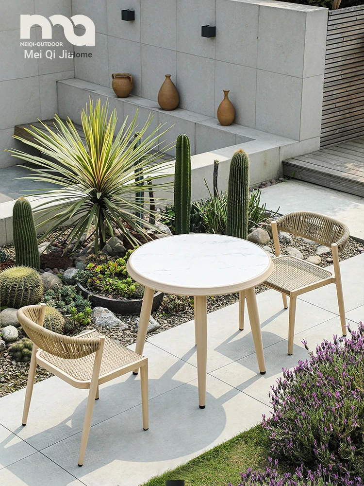 Modern Outdoor Balcony Set: Elegant Minimalist Table and Two Chairs for Stylish Courtyards and Patios - Perfect for Relaxation and Enjoying Nature!
