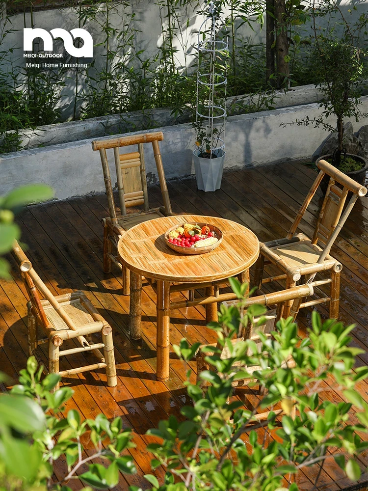 Outdoor Bamboo Table and Chair Set – Vintage Bamboo Armchairs, Bamboo Coffee Table for Courtyard – Perfect for Tea Brewing and Cozy Gatherings at Your Homestay or Trendy Café!