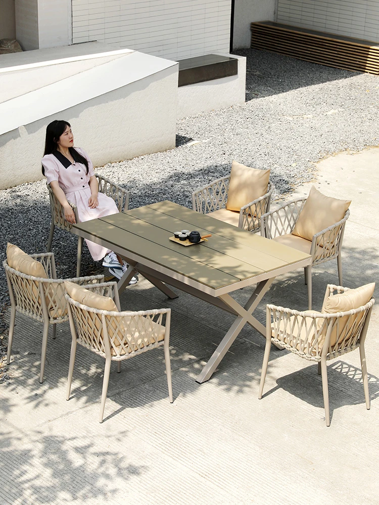 Luxury Outdoor Dining Table and Chair Set - High-End Aluminum Alloy Scandinavian Style Garden Patio Furniture for Villa and Leisure Use