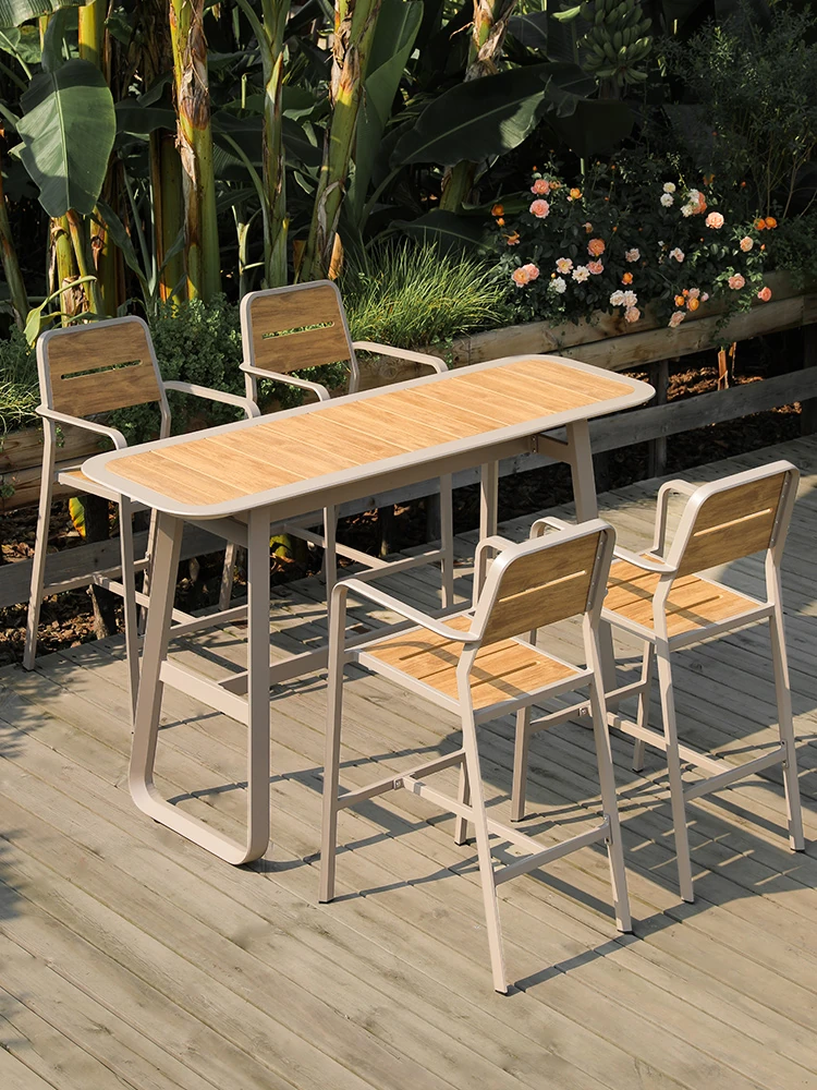 Outdoor Waterproof and Sunscreen Plastic Wood Table and Chair Set - Corrosion-Resistant Patio Furniture for Gardens and Villas, Perfect for Balconies and Outdoor Bars
