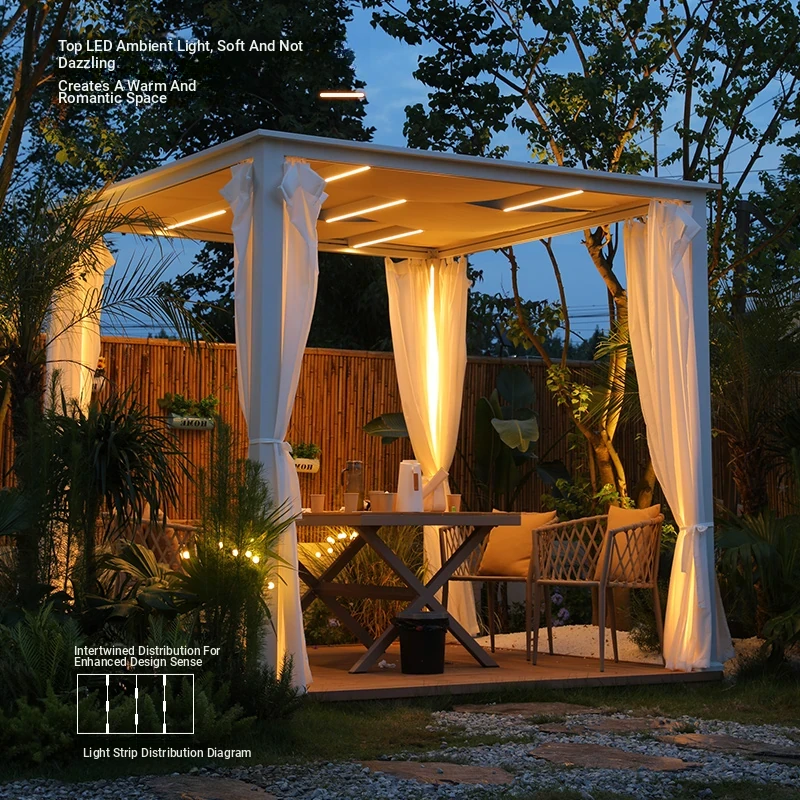 Aluminum Alloy Retractable Sunshade Awning for Outdoor Gazebo - Perfect for Villas, Courtyards, Patios, Rooftop Gardens & Rain Protection! Enjoy Stylish Outdoor Living with Ease!