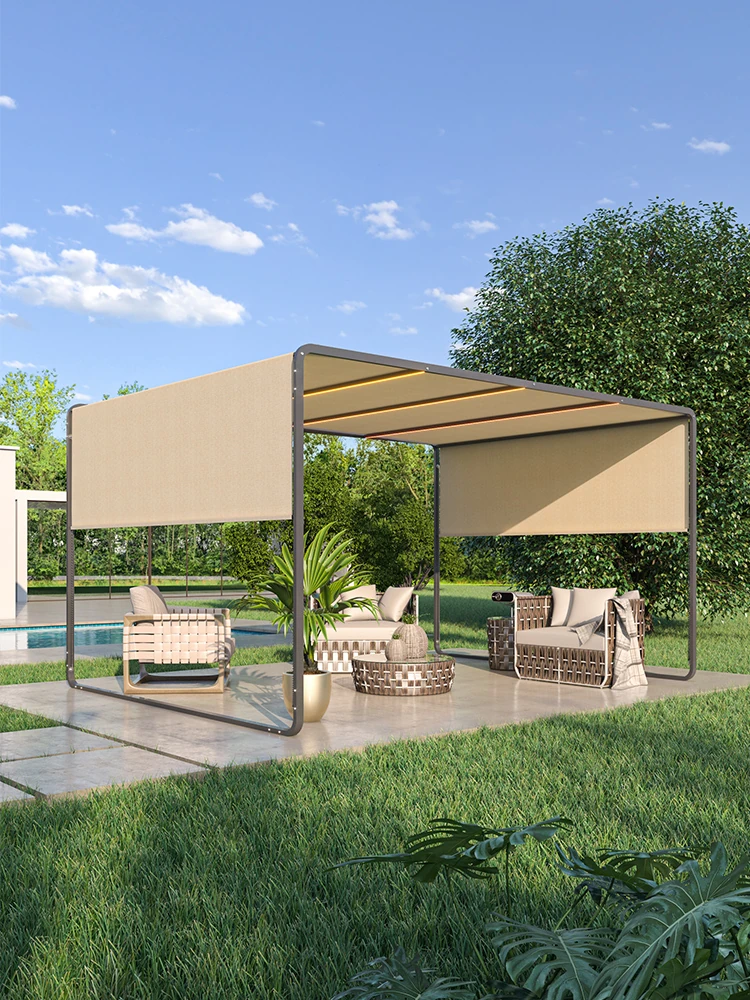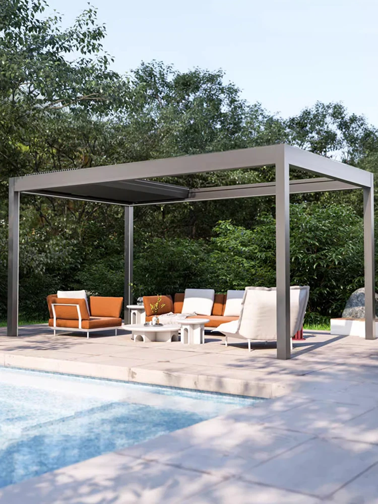 Aluminum Outdoor Pergola with Electric Sunshade for Villas and Gardens - Rainproof Awning for Patios and Rooftops, Perfect for Sun Protection and Outdoor Relaxation