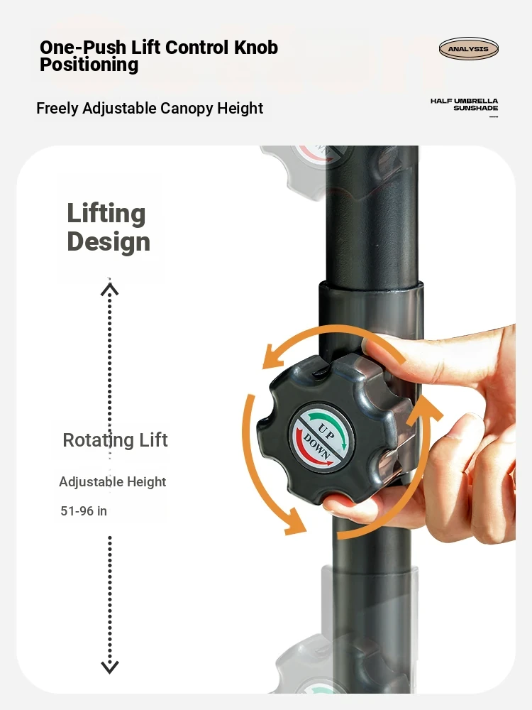 Adjustable Wall-Mounted Half Umbrella for Outdoor Sunshade – Perfect for Patios, Cafés, and Gardens – Stylish Rectangular Design with Easy Lift Mechanism