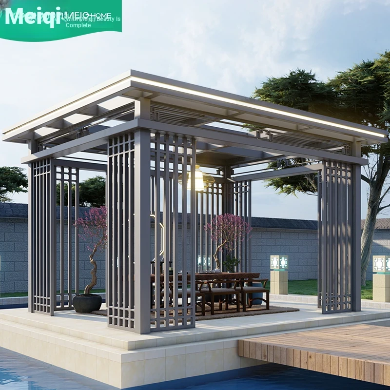 Modern New Chinese Style Aluminum Alloy Outdoor Pavilion for Courtyards and Gardens - Elegant Leisure Pavilion for Villas and Outdoor Spaces