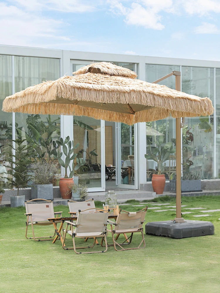 Outdoor Patio Umbrella - Straw Thatch Garden Umbrella for Sun Protection, Ideal for Courtyards, Scenic Spots, and Leisure Farms - Stylish and Durable Roman-Style Design