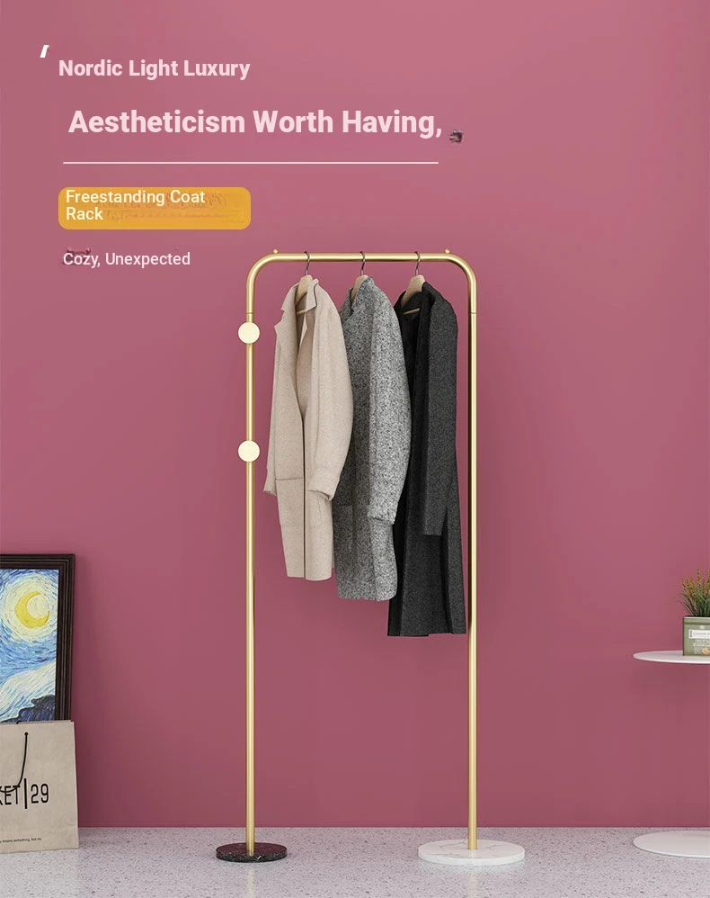 Minimalist Modern Freestanding Clothes Rack - Stylish Marble Design for Bedroom & Living Room, Nordic Luxury Coat Hanger, Perfect for Home Décor