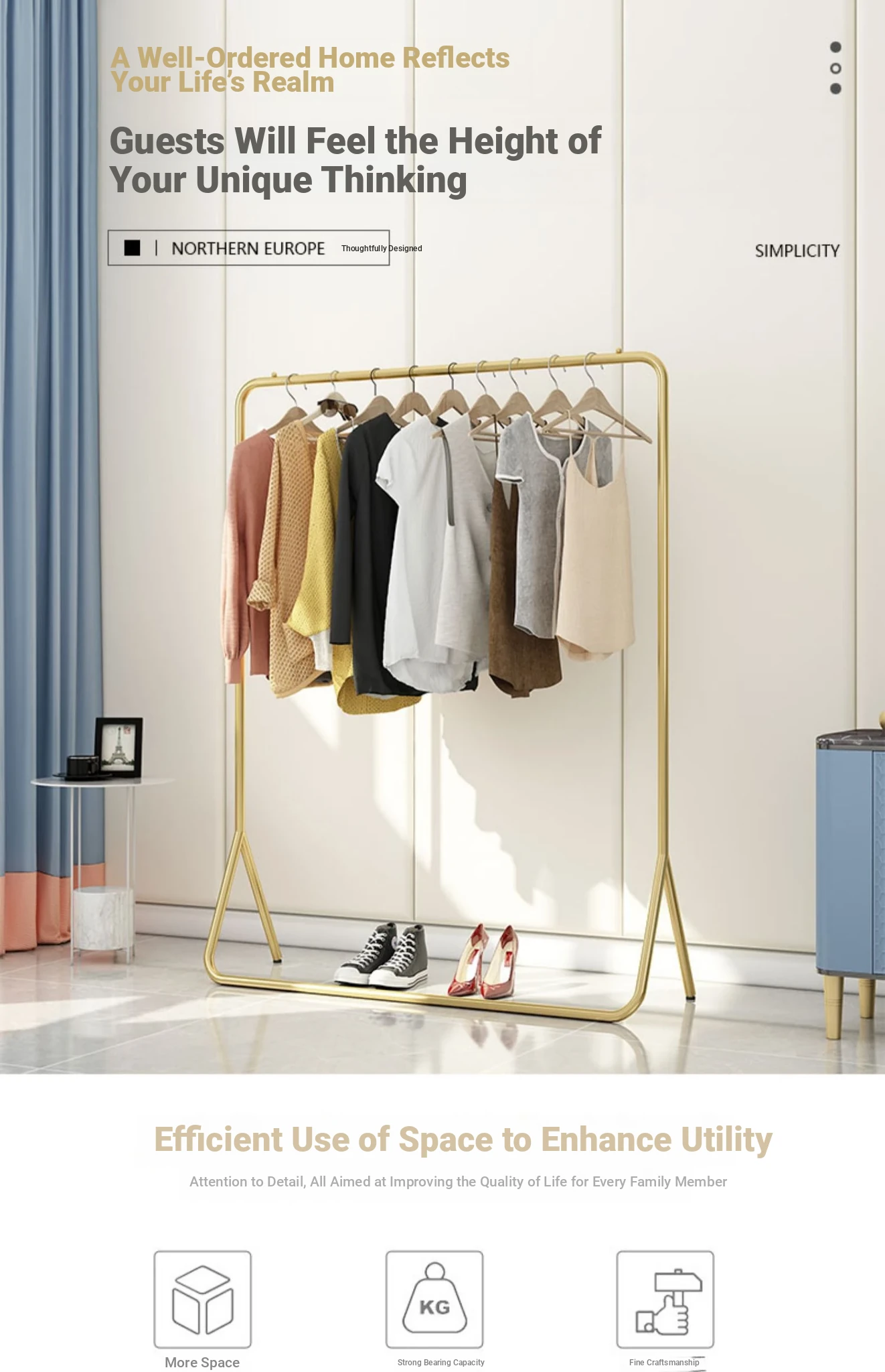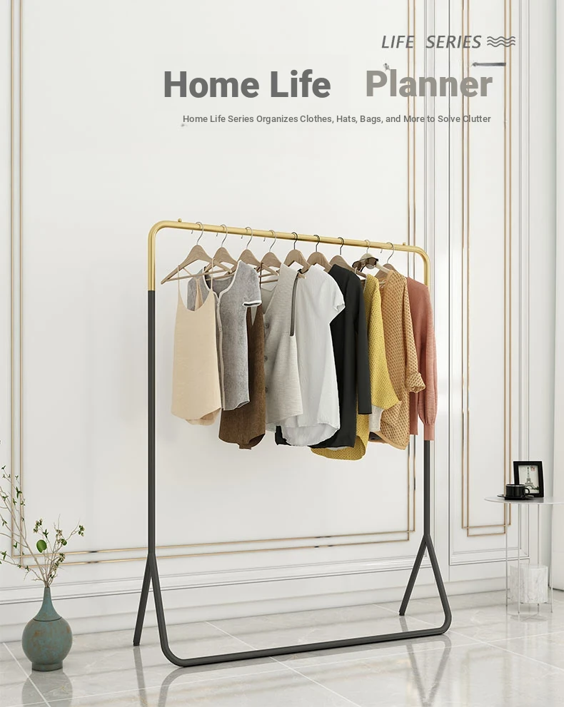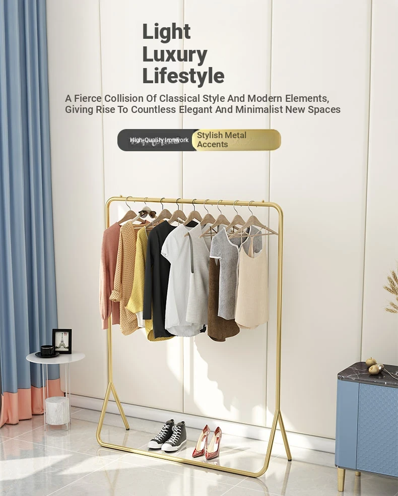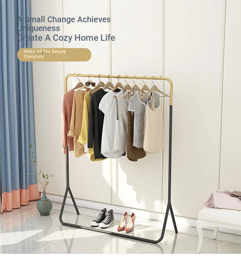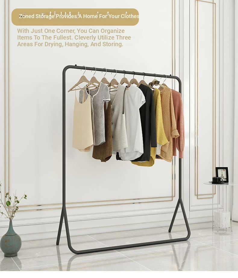 Stylish Floor Standing Clothes Rack - Nordic Minimalist Metal Hanger for Bedroom, Small Space Storage & Organization, Perfect for Your Home!