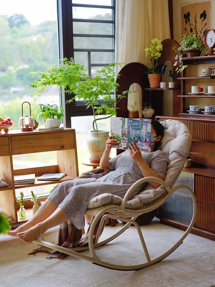 美齐元宝リクライニングチェア - 大人向けの快適なバルコニー用休憩椅子!シングルサイズのラウンジソファで、リラックスしたひとときをお届けします。揺れる心地よさで、日々の疲れを癒しましょう!