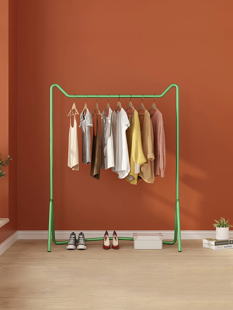 おしゃれで実用的な軽奢スタイルのフロアハンガー!インテリアにぴったりなクリエイティブなグリーンのコートラック。シンプルで使いやすく、あなたの寝室を素敵に演出します。家庭用衣服掛けとして最適なアイテムです!