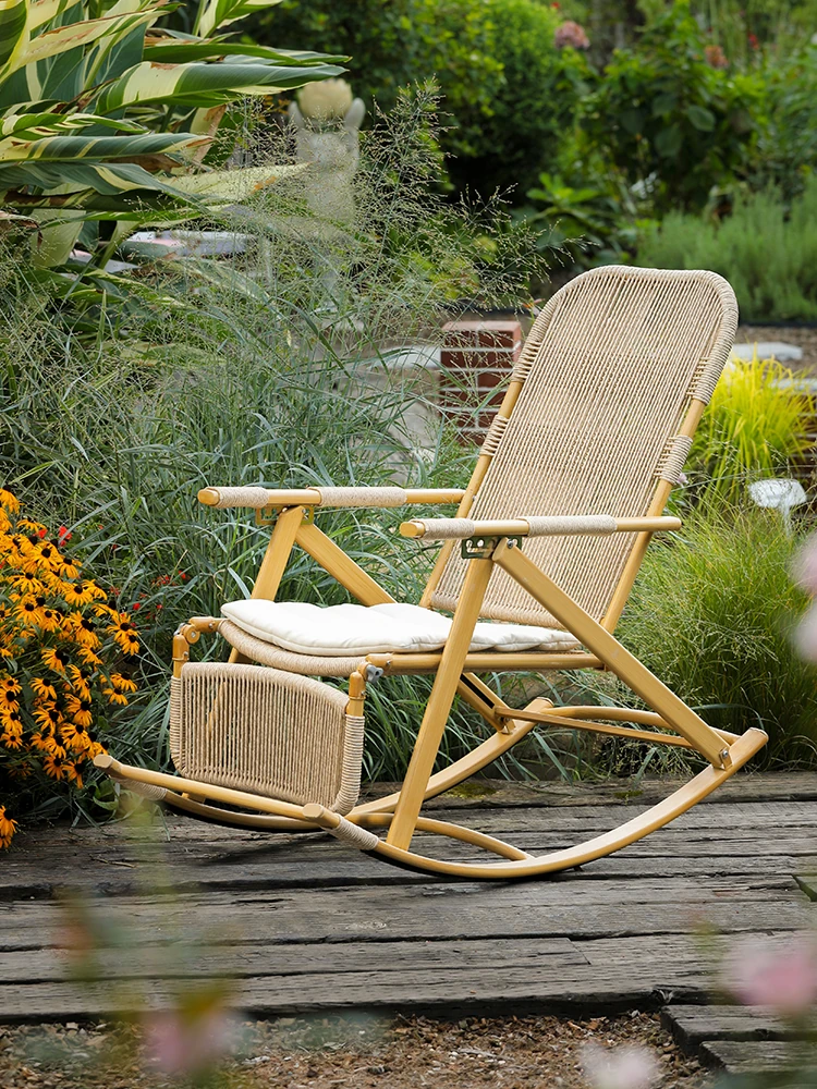 2025年新作!折りたたみ式リクライニングチェア - バルコニーやアウトドアに最適な、座っても寝ても快適なデザイン!おしゃれなラタン素材で、リラックスした時間を提供する揺れる椅子。