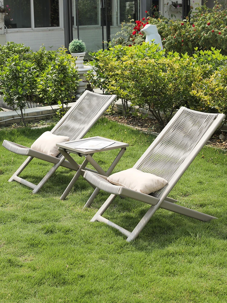 バルコニーにぴったり!おしゃれな小型テーブル&チェアセット - 折りたたみ式リクライニングチェア付き!読書やティータイムに最適な3点セット。快適なアウトドアライフを楽しもう!
