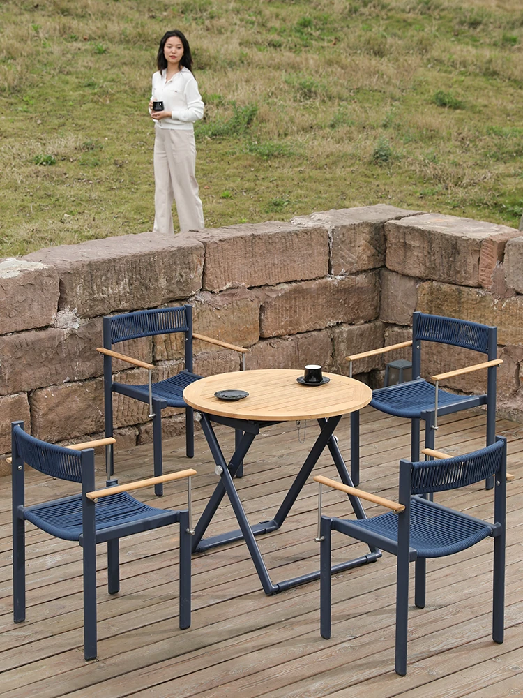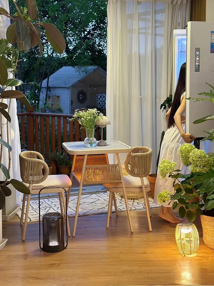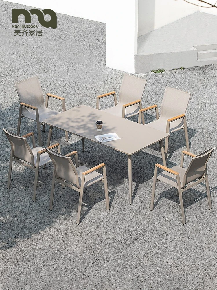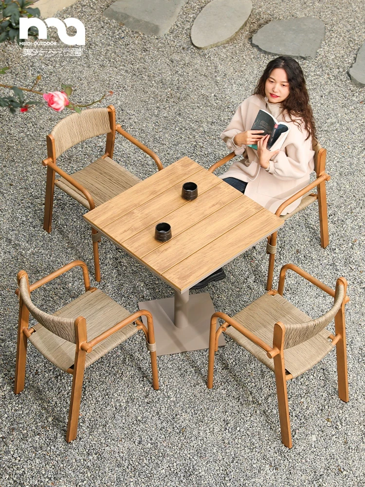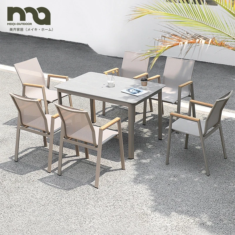 アウトドアテーブル&チェアセット - 防水・UVカットの北欧スタイル、庭やバルコニーに最適なリラックス空間を提供!ヴィラやガーデンにぴったりの岩板テーブルとチェアのコンビネーション。