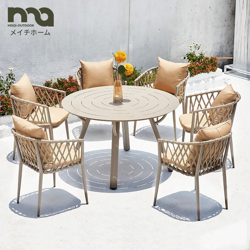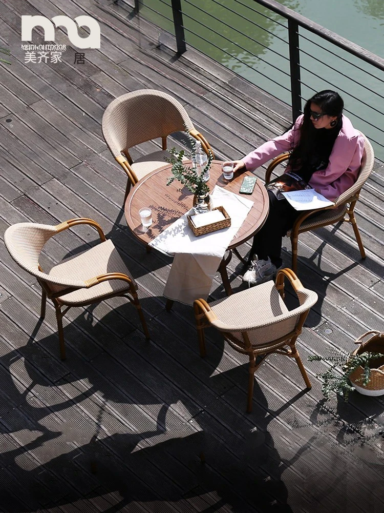 美齐アウトドアテーブルセット - ガーデンやバルコニーに最適なリラックス空間を演出!カフェや商業用にもぴったりなスタイリッシュなデザインのテーブルと椅子のセット。アウトドアライフをもっと楽しく!