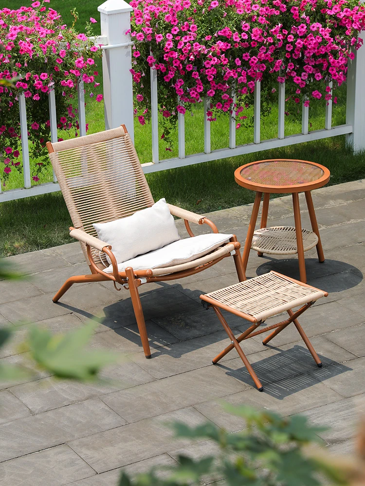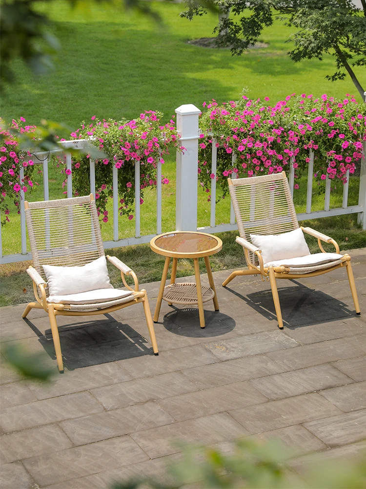バルコニー用ラタンチェア・テラス用ラタンソファ・アウトドアパティオ用リクライニングベッド・リクライニングチェア・バルコニー用小テーブルセット・3点セット・リラックスしたいあなたにぴったりのアイテム!