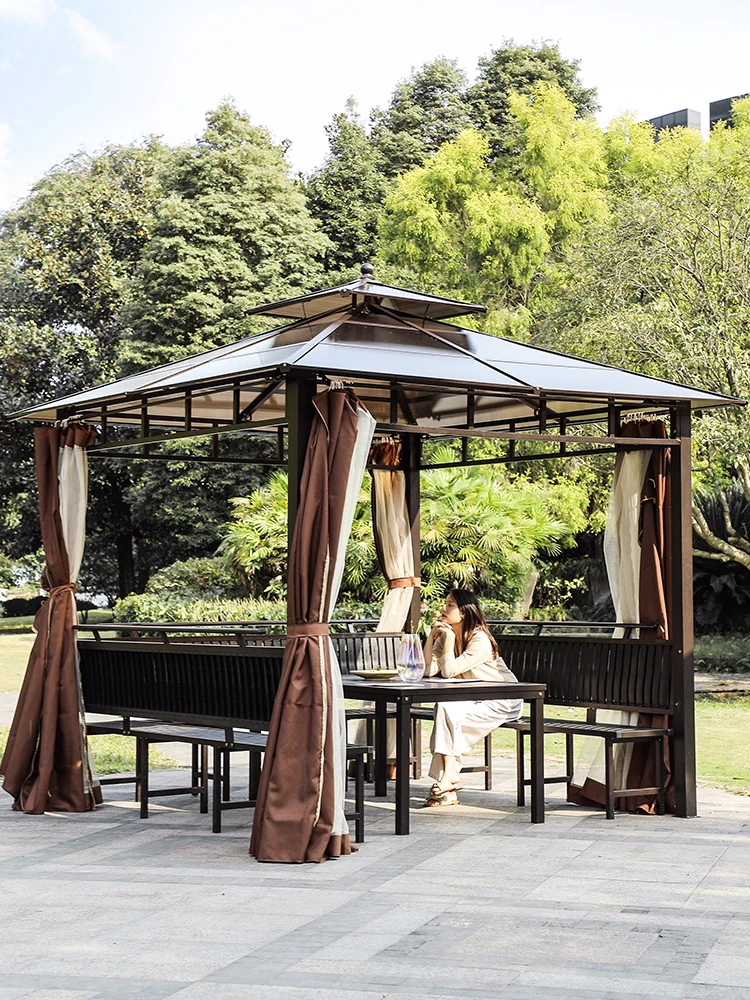 アウトドア木製パビリオン - 中式日除けテント、庭や別荘にぴったりのエレガントな四角形パビリオンで、快適なひとときをお楽しみください!庭園を美しく彩り、リラックススペースを提供します。