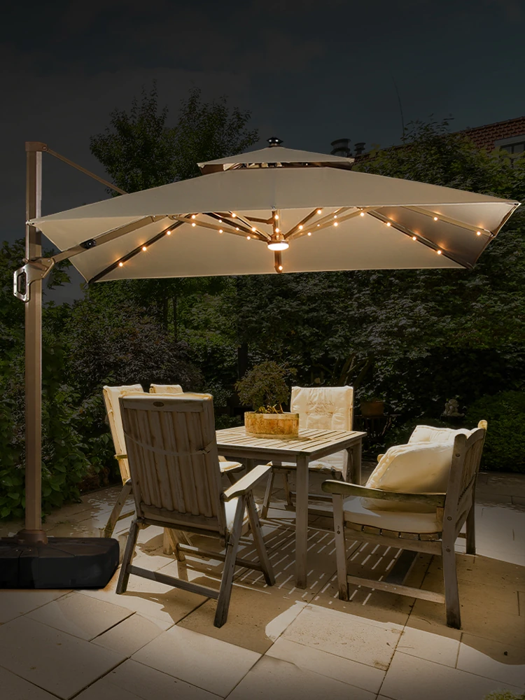 アウトドア日よけパラソル - 庭や別荘、テラスに最適!大きな日差しを遮るローマ傘、商用にもおすすめ。おしゃれなデザインでガーデンを華やかに彩ります。バナナパラソルで快適な屋外空間を楽しもう!